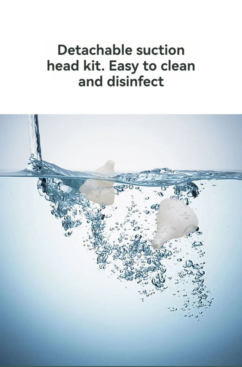 Detachable suction head can be rinsed with water and easily disinfected.
